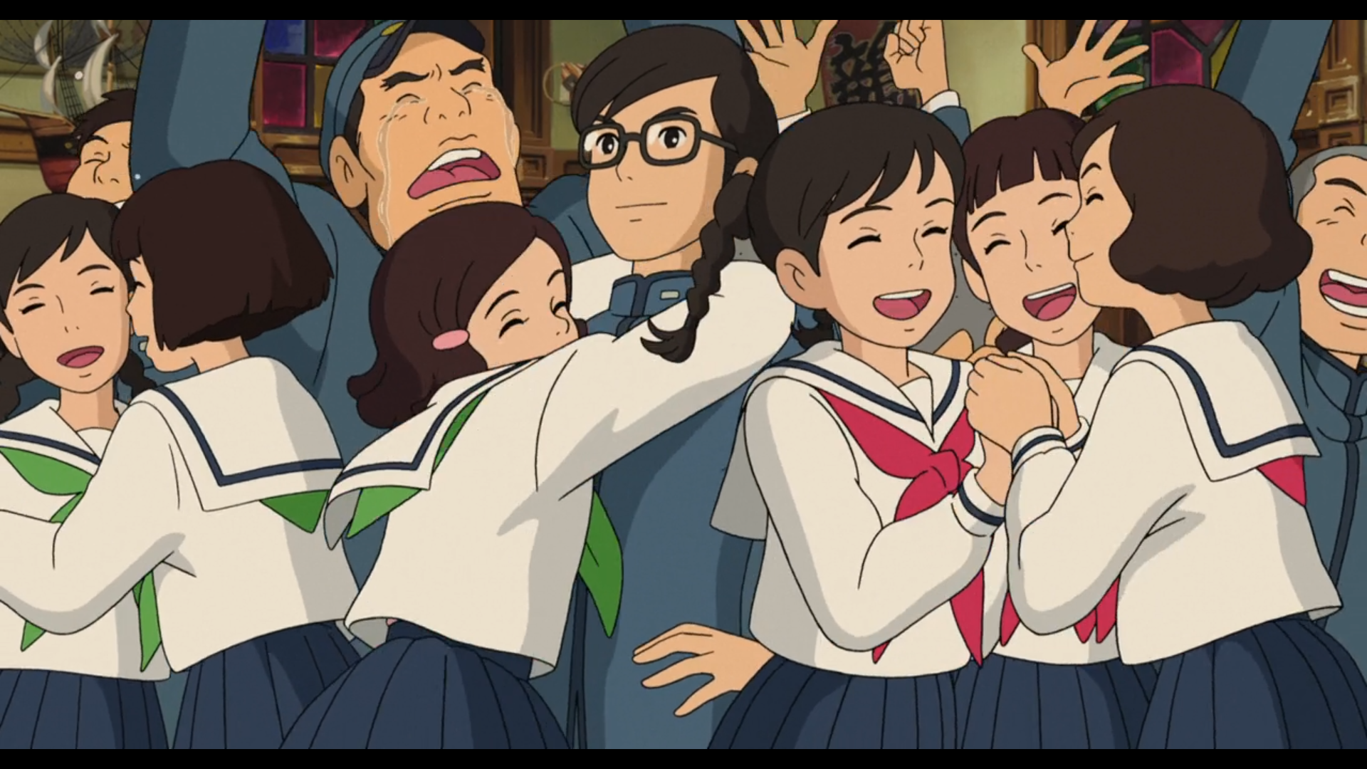 Dans la Coline aux coquelicots, c'est le travail collectif des lycéen.ne.s qui permet la rénovation du "Quartier latin", le sauvant de la destruction. De même, c'est une discussion entre la mère d'Umi et le père de Shun, partageant une inquiétude pour leurs enfants qui entraine la résolution de l'histoire entre les deux adolescent.e.s.